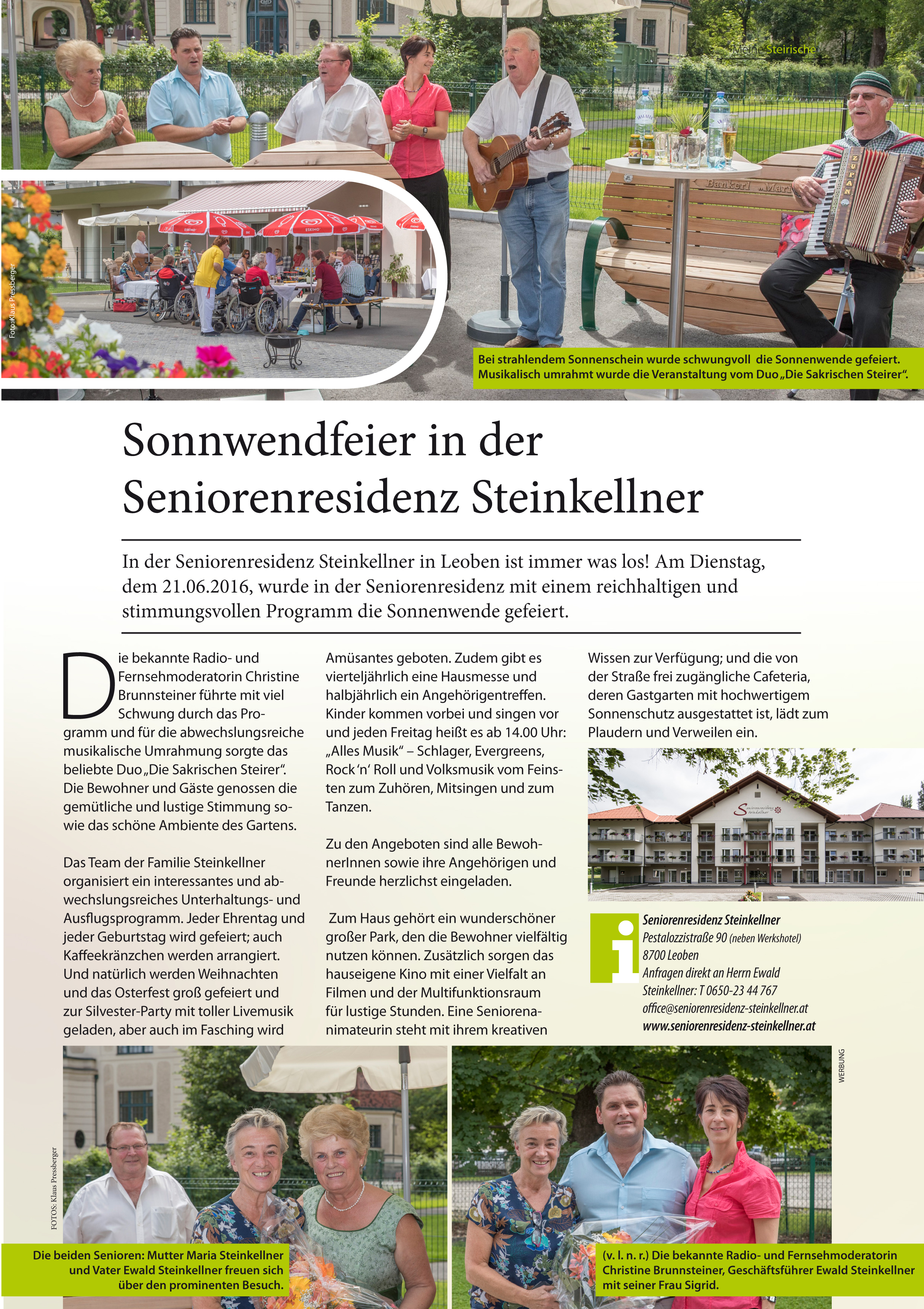 Auf Urlaub in der Seniorenresidenz Steinkellner