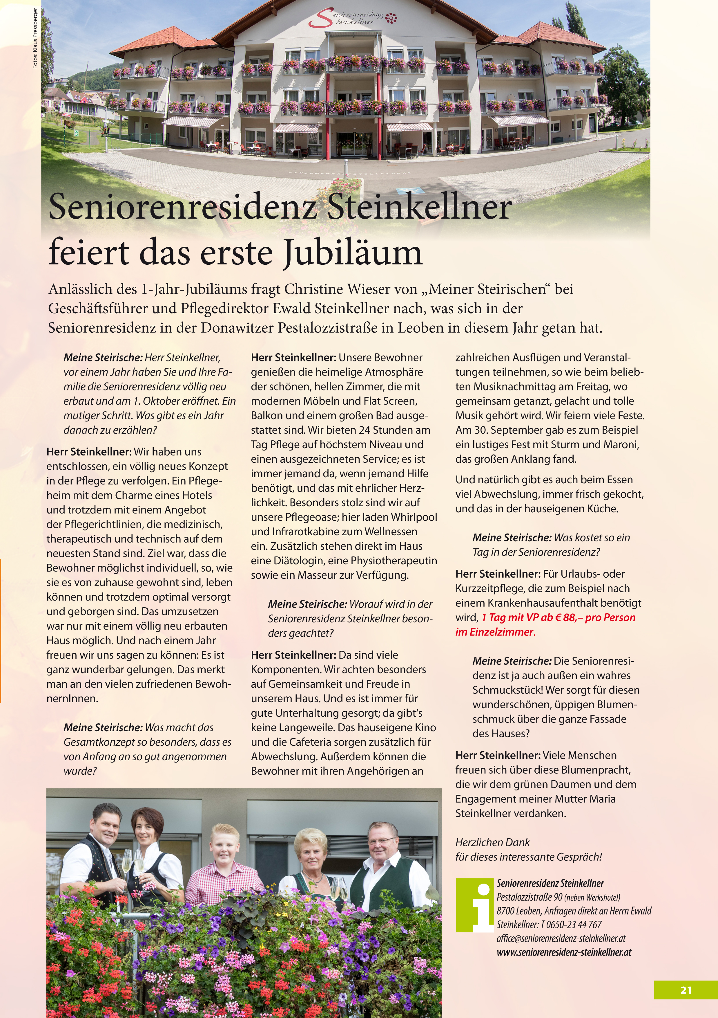 Seniorenresidenz Steinkellner feiert das erste Jubiläum