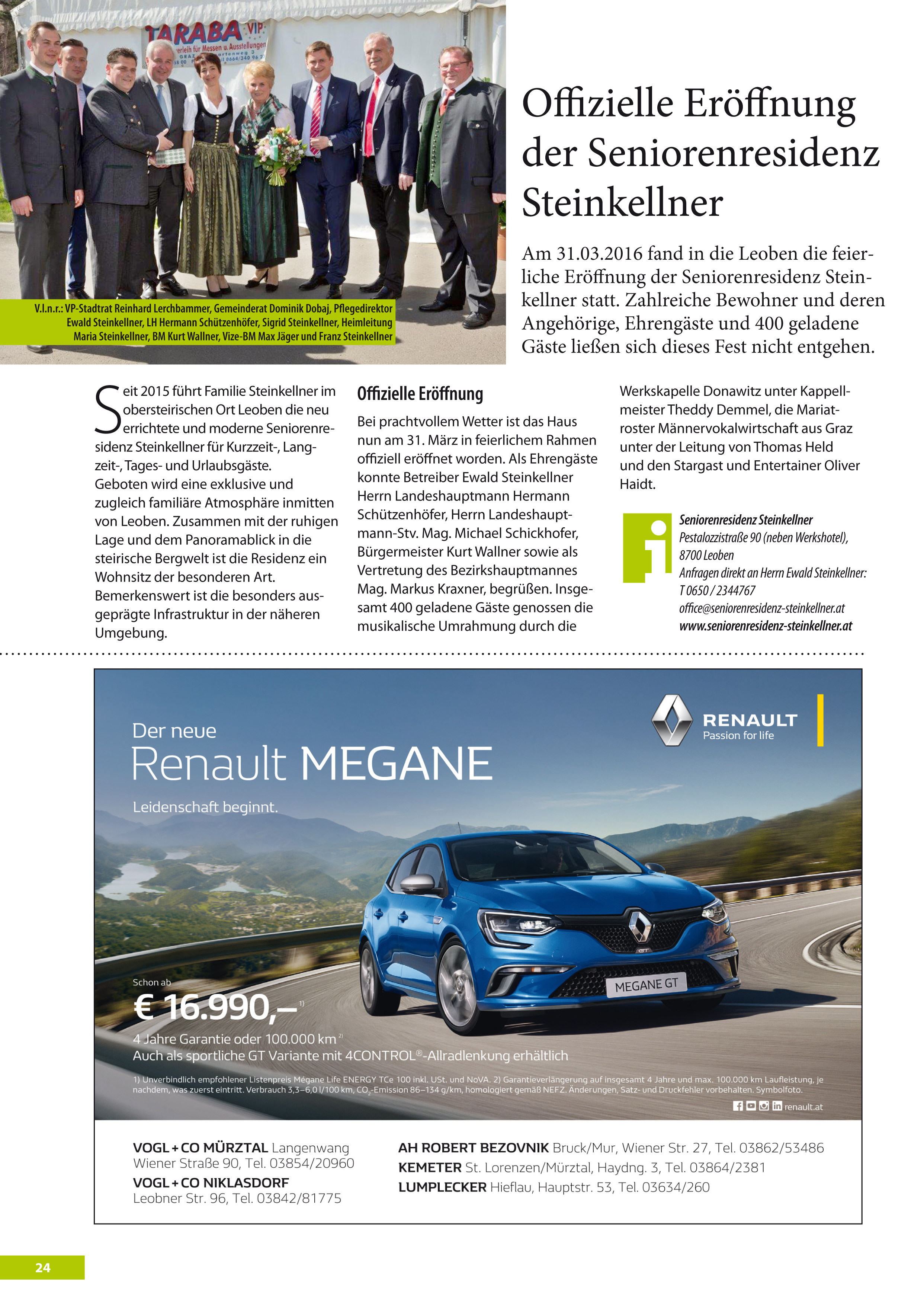 Offizielle Eröffnung der Seniorenresidenz Steinkellner