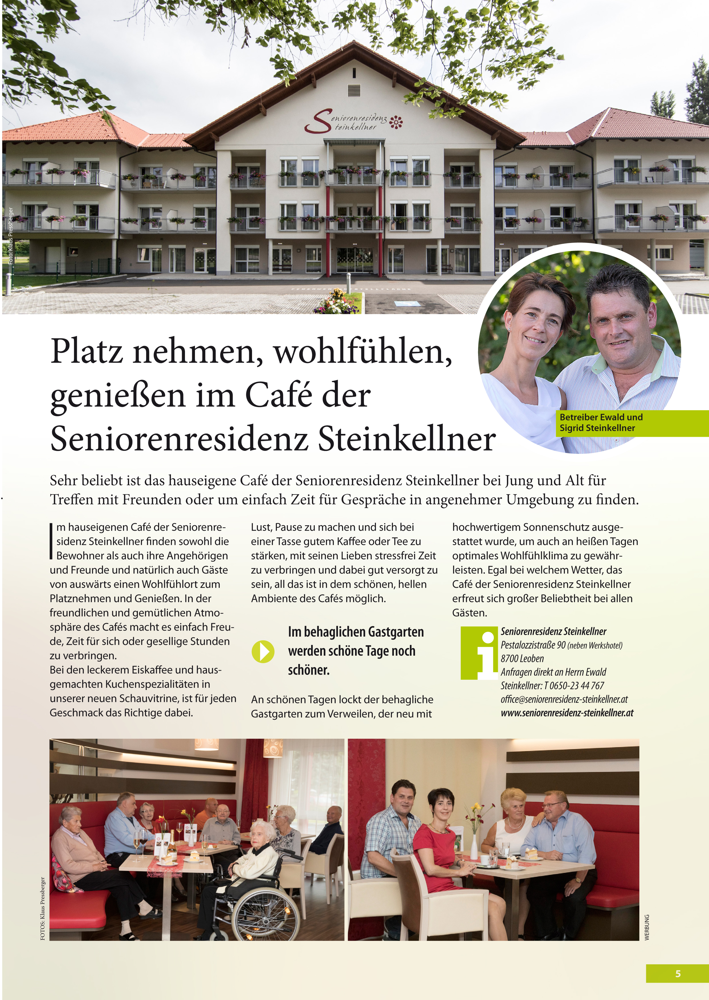 Platz nehmen, wohlfühlen, genießen im Café der Seniorenresidenz Steinkellner